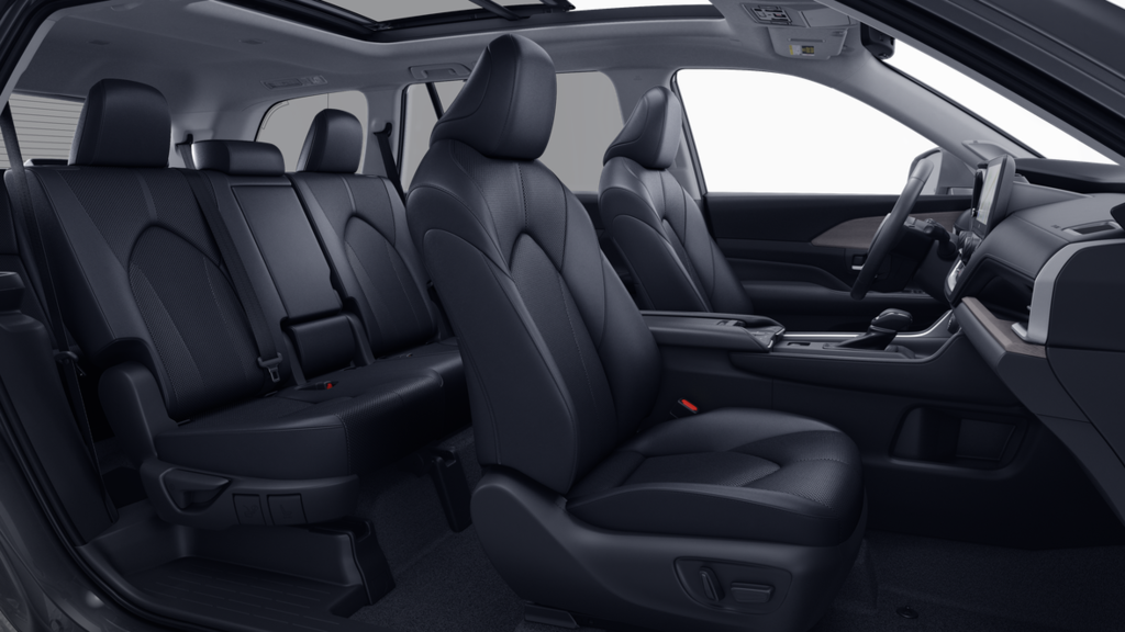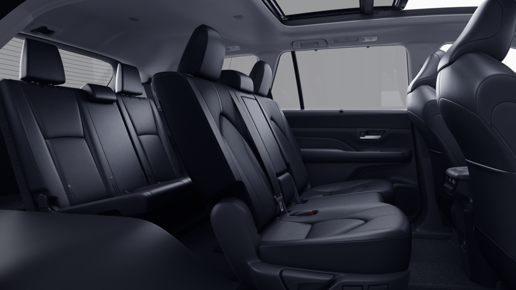 • 7-passenger seating with second-row fold-down captain's chairs and fold-down inboard armrests, adjustable headrests and two cup holders mounted on the floor; and 60/40 split, fold-down third-row seats with sliding headrests and recline function.